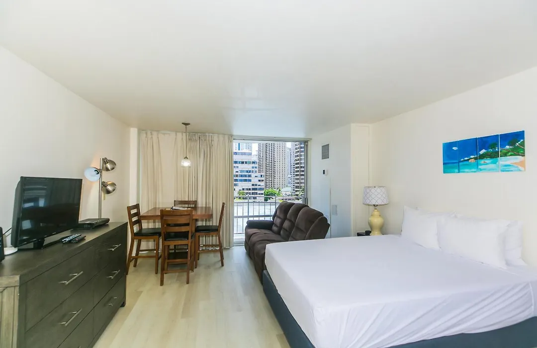 42m² Ilikai Marina 1093 City View Studio 아파트는 최대 3명까지 수용할 수 있습니다. 1개의 침실을 갖춘 이 아파트는 부엌도 갖추고 있습니다.
